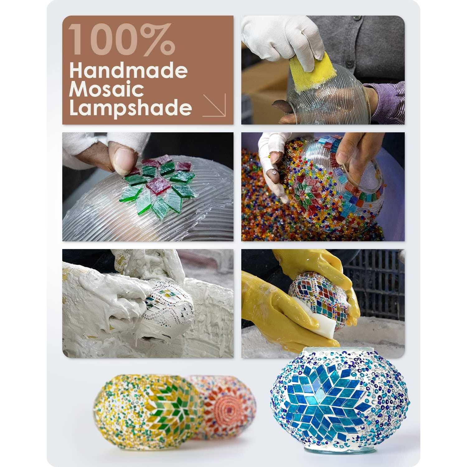 Turkish Moroccan Lamp with Bronze Base Yarra Decor 3 Color Options Handmade Swan Neck Tiffany Mosaic Glass Bedside Lamps for Bedroom