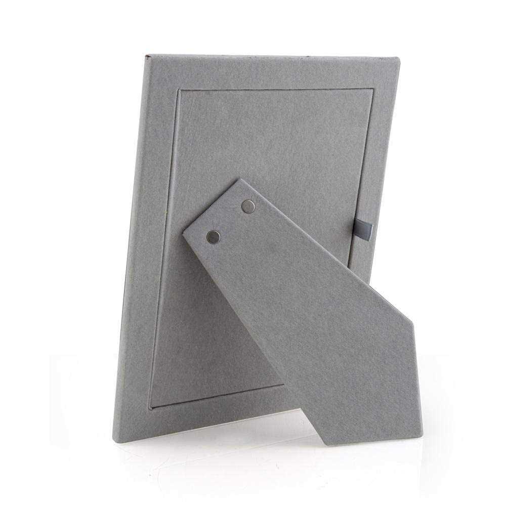 - Silver plate with periwinkle blue enamel, backed with light grey luxury velvet. Able to stand both Landscape and Portrait.