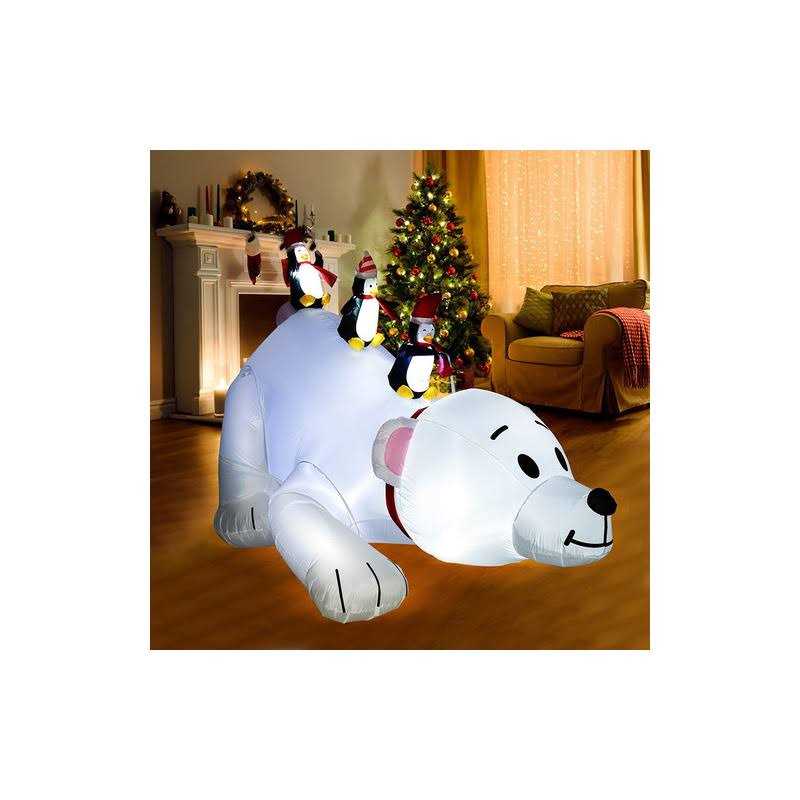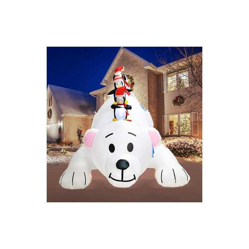 Brand: ALLADINBOXColor: whiteFeatures: Eye-catching LED light: Christmas Polar Bear with Penguins Shaking Head inflatable decoration comes with bright built-in LED lights. It is bright enough for your neighbors and friends to quickly discover this lovely decoration even at night. Powerful Build-in Blower: The Christmas decoration has a premium ABS plastic built-in blower. Just plug it in and it won’t be a long time, then you will see an adorable decoration in your yard. It is efficient and inflated quickly. Perfect Christmas Decor: Christmas inflatable decoration has a lovely shape. It creates a warm and happy atmosphere, making you and your family enjoy this unforgettable holiday. Convenient to set up: Connect to the power supply to inflate, make sure the blower is facing outwards, and it will blow up within minutes. You can fold it up when you’re not using it. Adopting 10 FT power cord which is long enough to make sure it can be placed in the yard or lawn. Product Size & Components: Length 8FT, Height 7.2 FT. Each package includes 1 inflatable decoration (with blower) and 4 iron ground stakes. The ground stakes can help you secure the decoration to the ground. Also, you need to zip up the bottom zipper to avoid air leakage. model number: A-2020071409Part Number: A-2020071409EAN: 0779640954140Package Dimensions: 12.7 x 12.5 x 7.5 inches