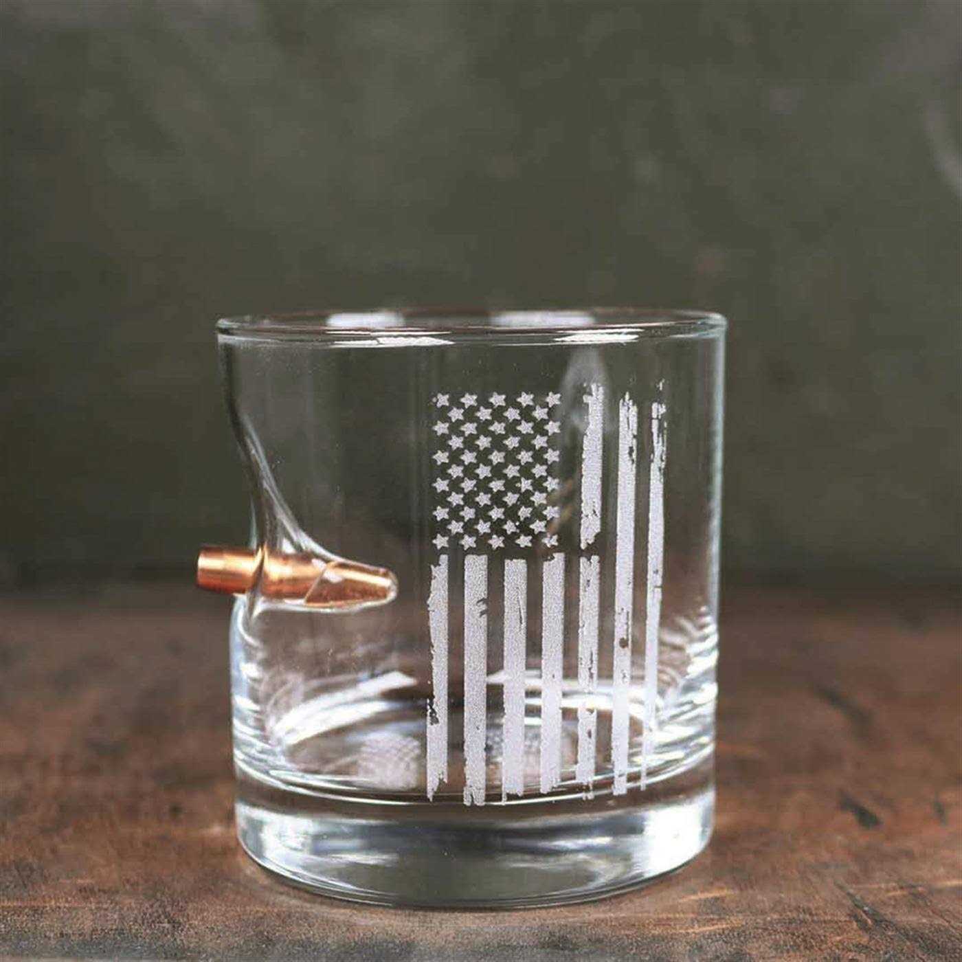 BenShot 11-oz. USA Flag Rocks Glass with .308 Bullet