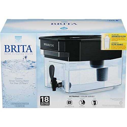Drink healthier, great-tasting water with this BPA free Brita 18 Cup UltraMax Water Dispenser. The extra large capacity makes this water filtration system perfect for busy families, sports teams and offices, while a new, sleek, space efficient design allows for convenient storage. A flip top lid makes refilling a breeze. Plus, just a glance at the filter indicator lets you know when it is time to change the Brita water filter.