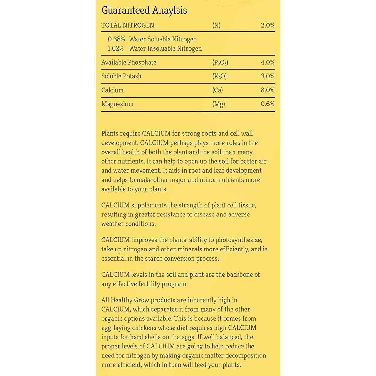 Coop Poop organic fertilizer by Healthy Grow is naturally packed with the essential nutrients your soil needs to grow hearty, healthy plants. This Aerobically Composted Chicken Manure (ACCM) is high in calcium for strong plant tissue development and disease resistance, while also improving photosynthesis, nutrient uptake and starch conversion. Plus, Coop Poop is virtually odor-free compared to the pungent scent normally associated with other manure-based composts. Easy to use and apply at any time. Will not burn. High performance improves soil health. Stimulates microbe activity. High in calcium. Low odor. Safe for kids and pets. OMRI listed.