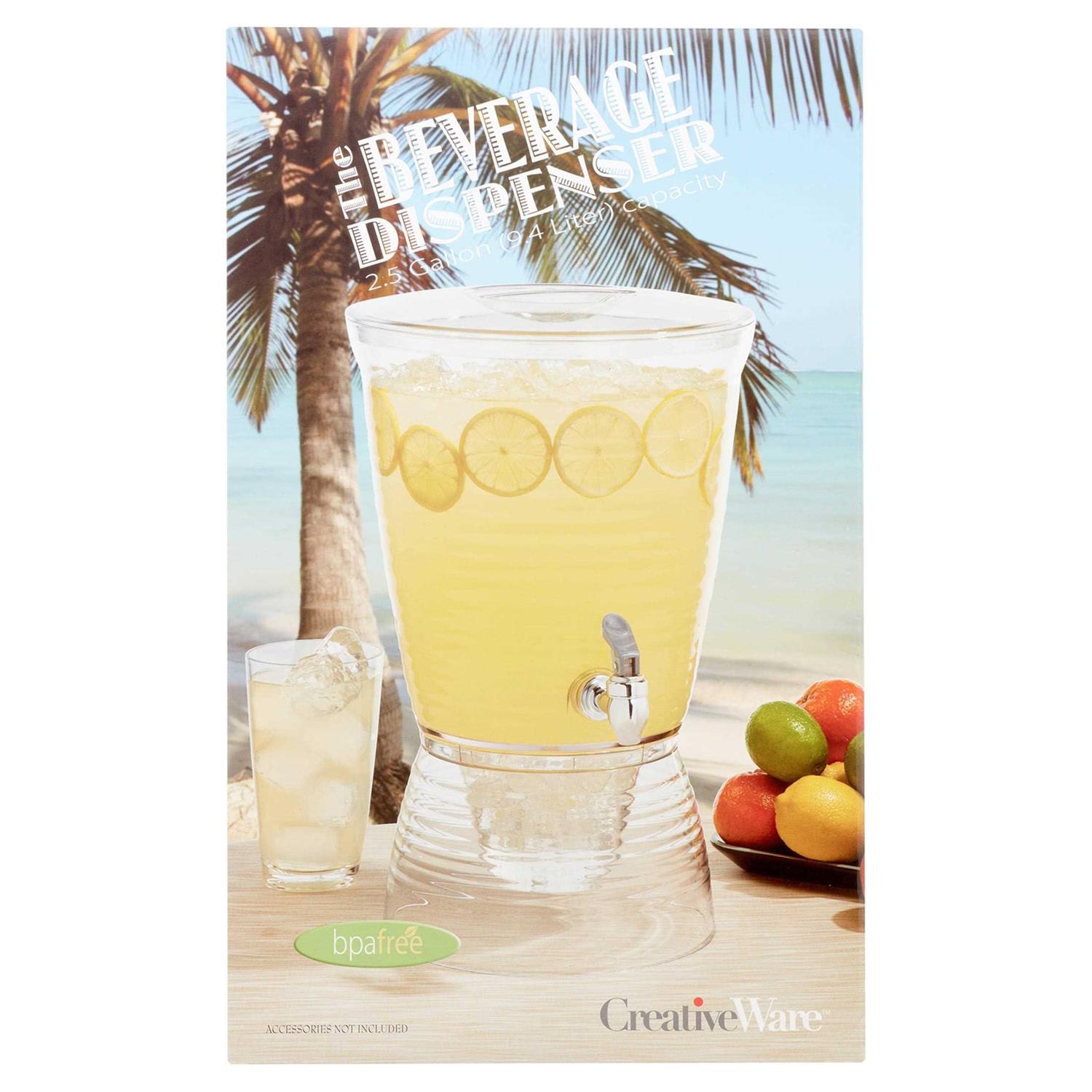 Enjoy your favorite drinks whenever you want when you use the creative bath bark 2.5-gallon beverage dispenser. Ideal for parties, events, employee functions, hot days or just whenever, this product is an excellent tool for both indoor and outdoor drink service. This drink dispenser is bpa free and makes drink service quick and easy. A shatterproof reservoir holds 2.5 Gallons of your choice of beverage and locks securely onto a firm base to help protect against leaks and spills that might otherwise occur. The base can even be filled with ice for additional cooling. This cold beverage dispenser is designed for use with cold beverages only and can be used anywhere the base can be placed securely. Before use, hand washing is recommended. It features a neat, clear design so you can see the liquid inside of the reservoir, making it easy to see if you are running low on either drink or ice. Creative bath bark 2.5-gallon beverage dispenser bpa-free beverage dispenser can be used indoors or outdoors for cold beverages only shatterproof reservoir locks securely onto the base fill the stand with ice for additional cooling hand washing recommended.