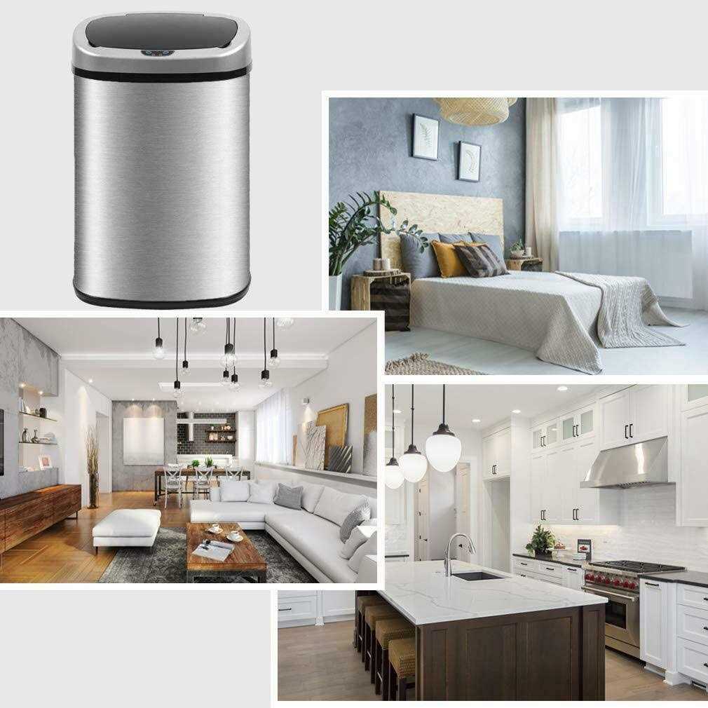 Trash Cans by Dkeli. Details:Automatic Touch Free High-Capacity Trash Can with Lid for Kitchen Bathroom Bedroom Home Office Product Features: Fashionable appearance — Our trash can with sensible talents and sophisticated design, this garbage can makes an excellent improve for any kitchen decor. Mute Design — Our automatic trash can use slow down technology, open and close will not make a lot of noise, you can rest assured that you can use, do not worry about disturbing the rest of the family. Automatic Touch Free — Just the motion of your hand opens the lid automatically! It’s the hygienic and convenient choice. Easy to clean & Isolated Smell: Our kitchen trash can is treated with stainless steel wire drawing, which makes it very convenient to clean up and resistant fingerprint. Perfect Package — Each of our trash can is packed independently, and there are several layers of cardboard outside to ensure that there will be no damage during transportation. Product…