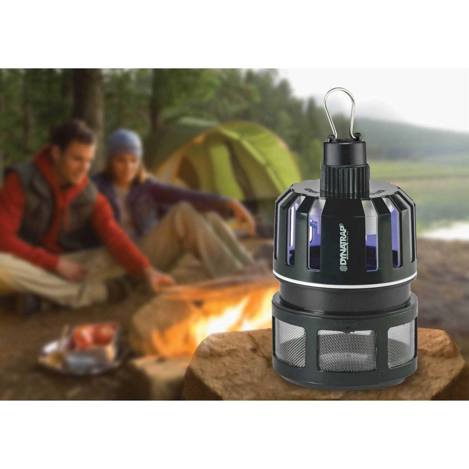 The Dynatrap Ultralight Insect Trap won’t weigh you down. This travel size trap attracts and kills mosquitos and other nuisance flying insects including biting flies, wasps, stink bugs and, and Asian beetles. The Dynatrap Ultralight Insect trap is engineered for 3-way protection. First, a UV fluorescent bulb generates a warm light, attracting insects. Then a second lure, an exclusive Ti02 titanium dioxide-coated surface, produces CO2 that’s irresistible to mosquitos. Third, a powerful yet whisper-quiet vacuum fan sucks insects into the retaining cage where they dehydrate and die. A unique twist-to-close feature ensures that any insects still alive in the retaining cage will not escape when the trap is turned off. Convenient for travel, patios, kitchens and porches, the Dynatrap Ultralight can be hung just about anywhere.