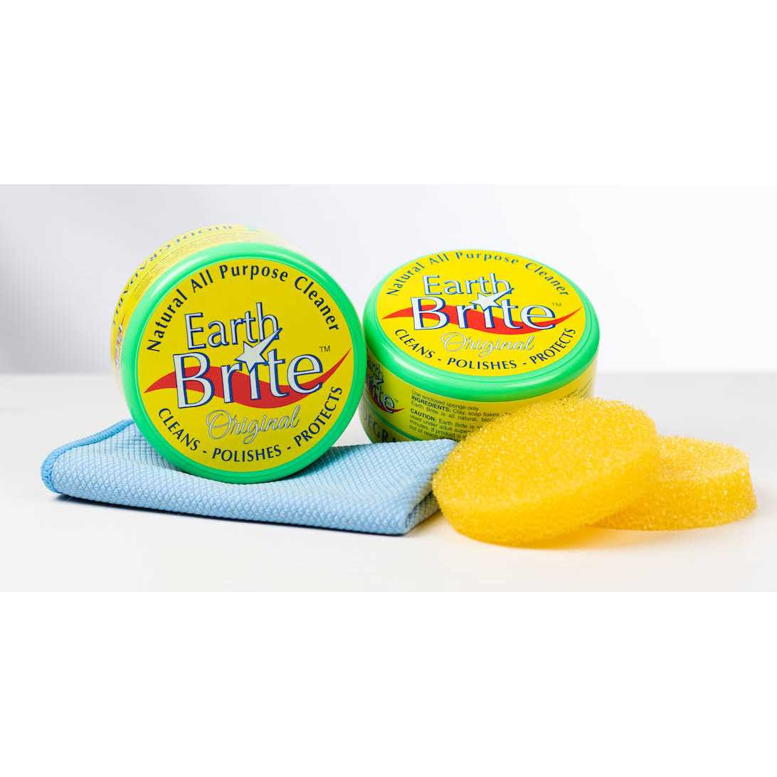 All-Purpose Cleaners by Earth Brite. Details:A powerful all-purpose cleaner for all types of non-porous surfaces. A small amount of this all-natural white clay compound packs a ton of power. It cleans, polishes, protects and brings a stunning streak-free shine to stainless steel, silver, copper, acrylic, PVC and more. Makes appliances, sinks, bathtubs, silverware, wheel rims and garden furniture look like new.