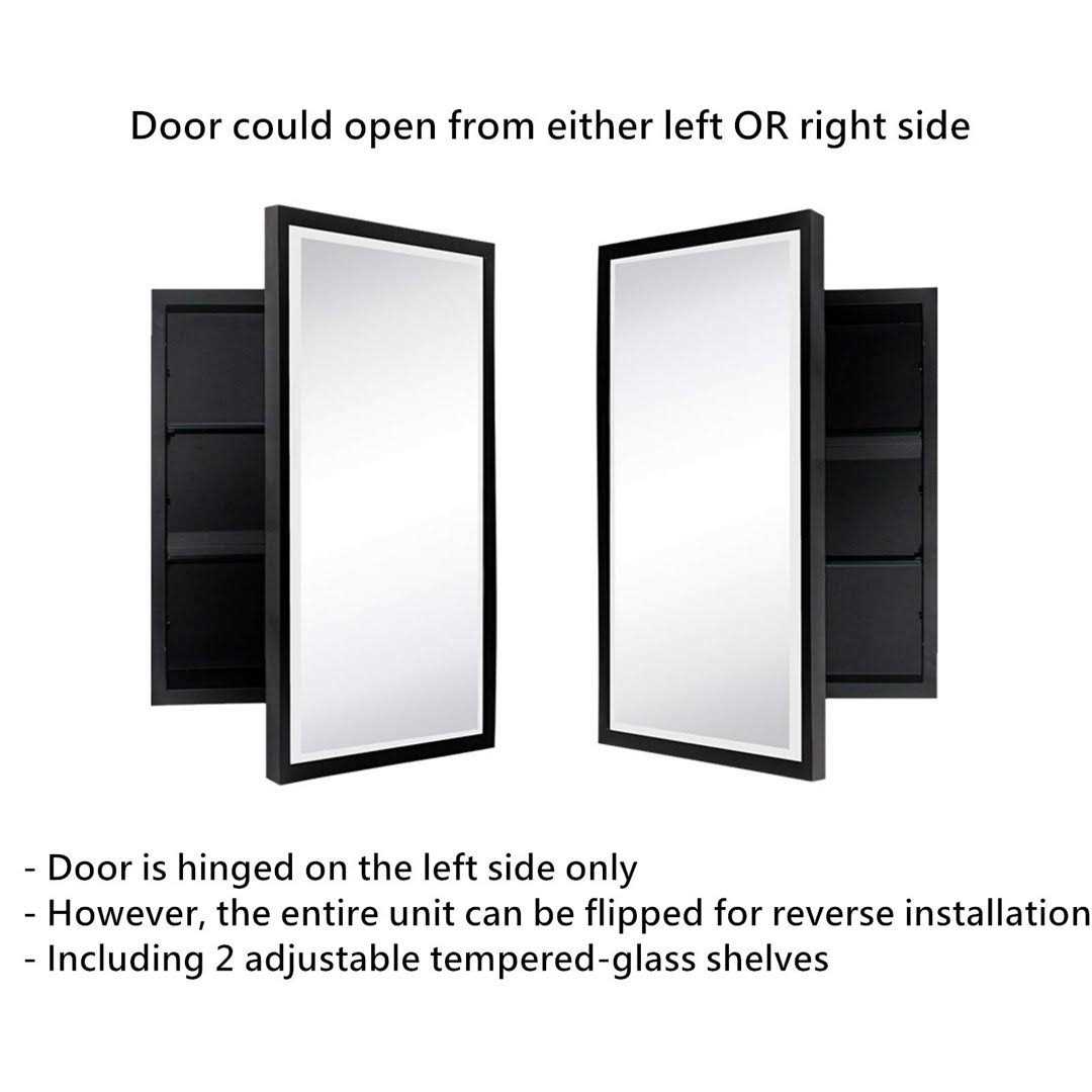 Ebern Designs 423205828B184B1CB6646F4D3D31B555 Haddison Recessed Framed Medicine Cabinet with Mirror and Adjustable Shelves Finish: Black, Size: 24″ x