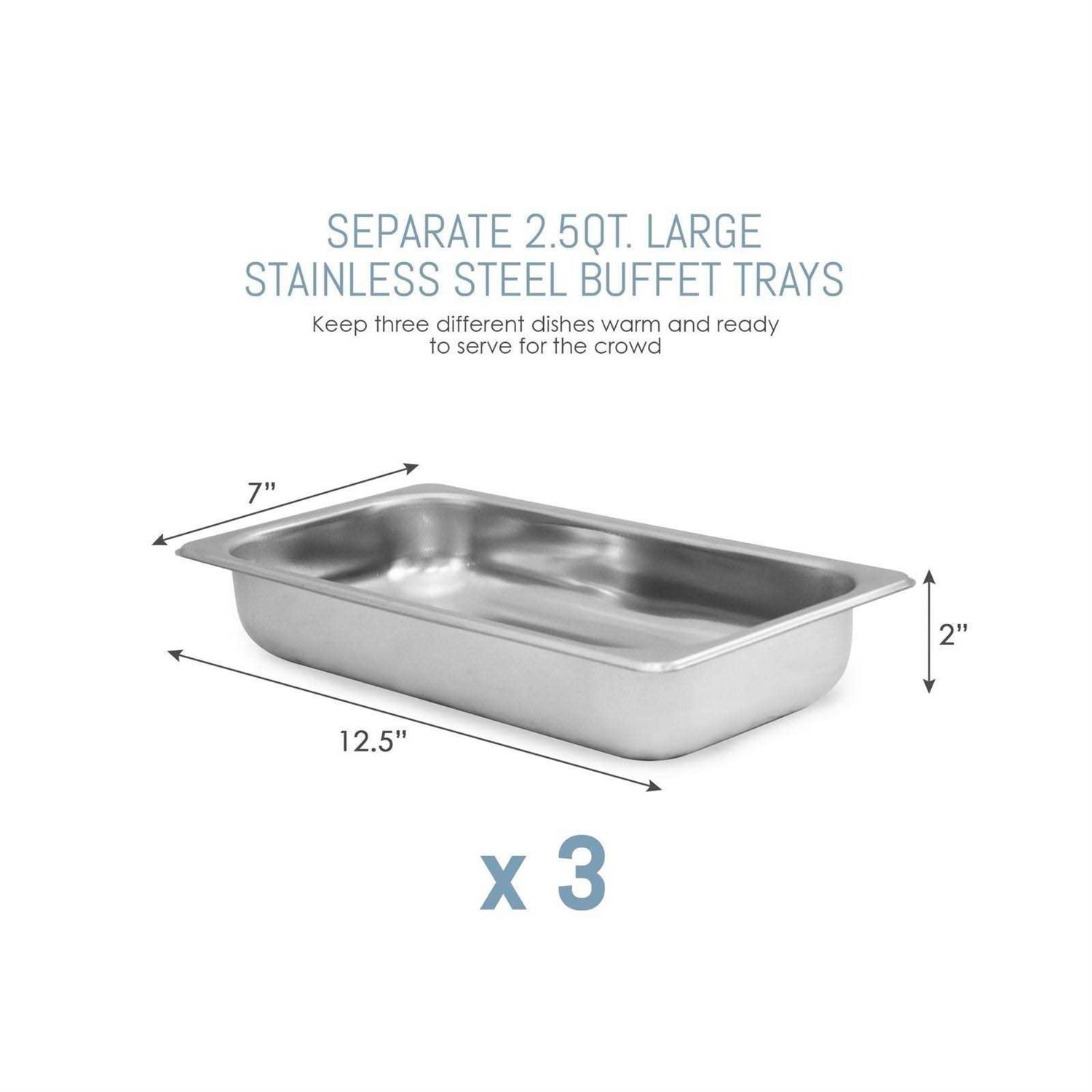 Elite Platinum Stainless Steel Electric Triple Buffet Server, Grey, 7.5 quart