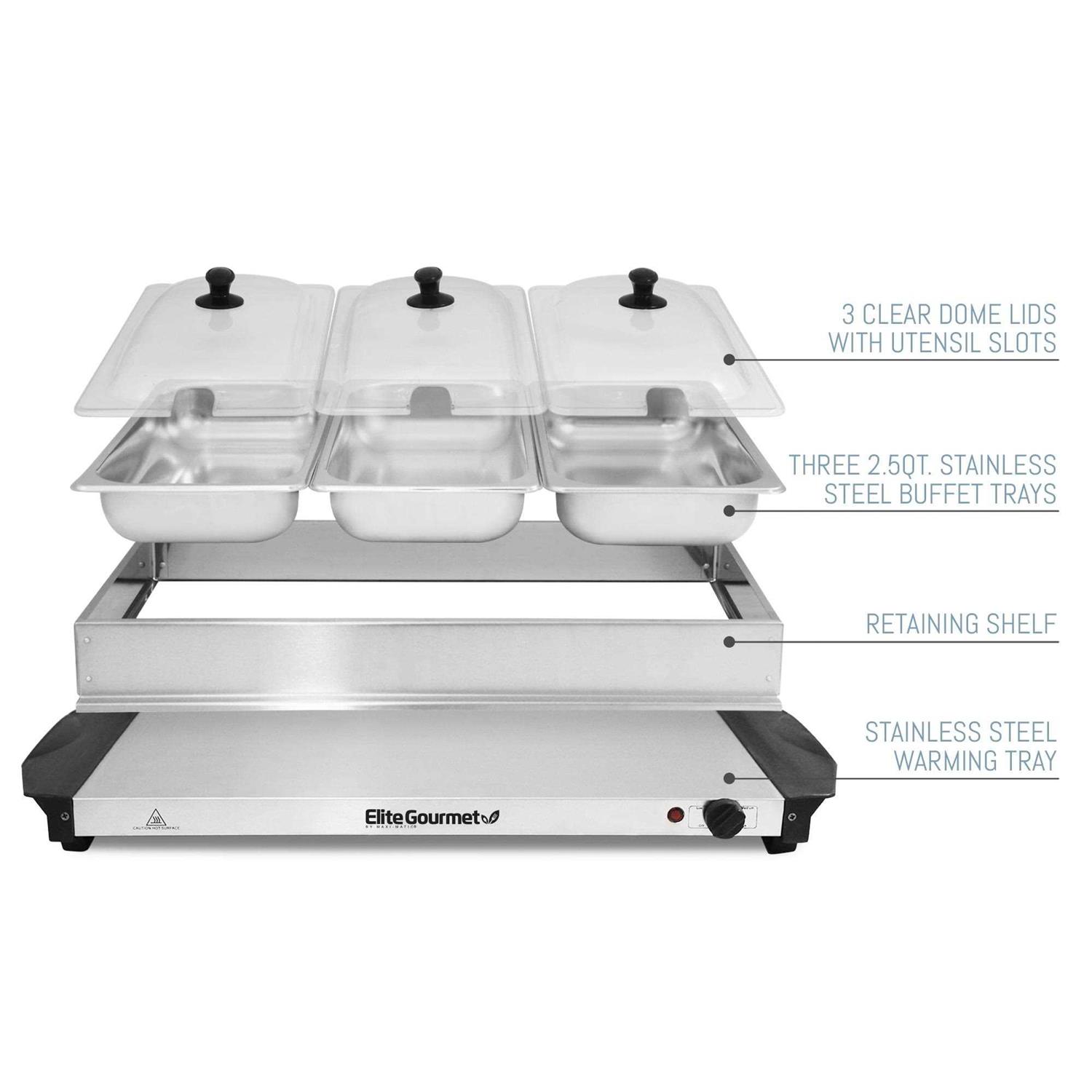 Elite Gourmet Stainless Steel Electric Triple Buffet Server