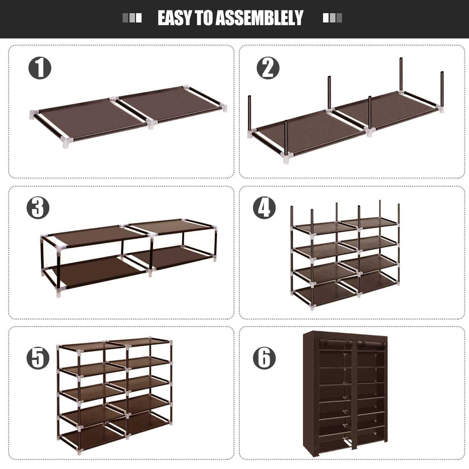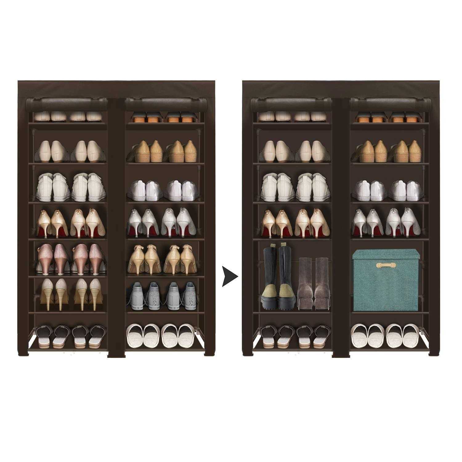 Erone Shoe Rack Storage Organizer, 28 Pairs Portable Double Row with Nonwoven Fabric Cover Shoe Rack Cabinet for Closet