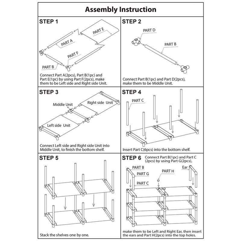About The Item: Material & Structure: Made From Durable Waterproof Non-woven Fabric Tiers , Strengthened Plastic Connectors And Thickened Iron Pipes. Short Design Of Shelf Pipes Are Hard To Bend Even Put Larger & Heavy Objects. Middle Pole Support Strengthen The Whole Structure, That Makes This Rack Sturdier, Stabler And Longer Lifetime. Store Capacity: 3-tier Rack Can Hold Up 12 To 15 Pairs Of Adult Shoes, You Can Separate Your Shoes If Need, Such As Sport Shoes Put On Left Shelves, Other Shoe.