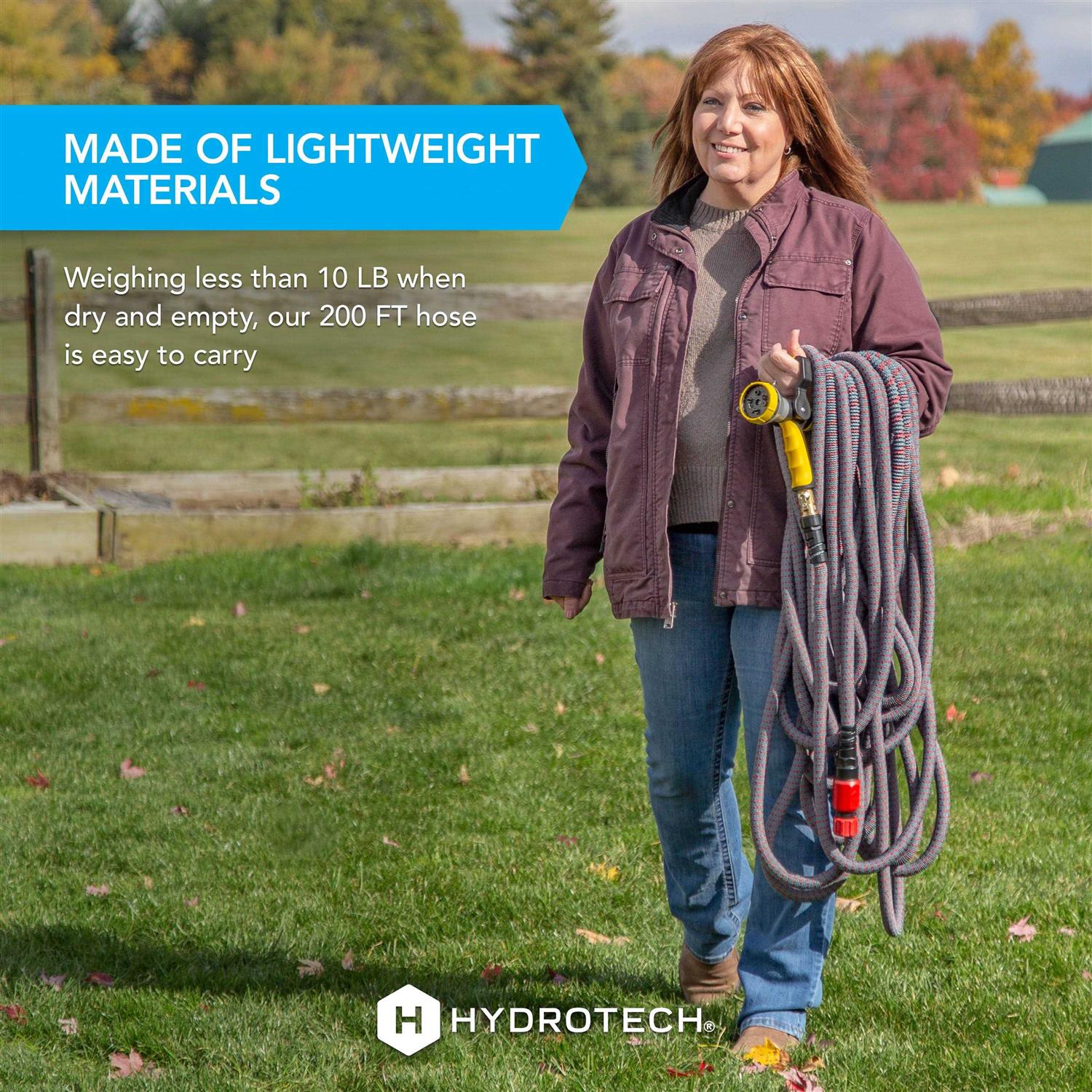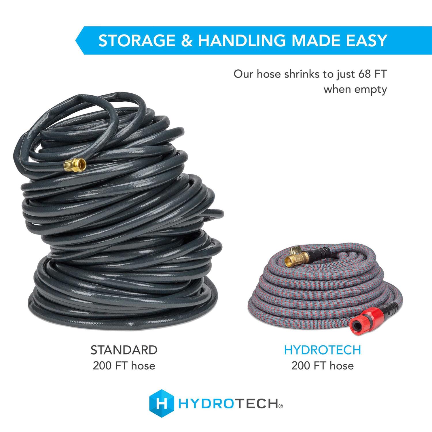 Expandable Burst-Proof Hose is perfect for all your watering needs and can be easily transported to anywhere you work. Designed for large yards, farms, and expansive properties, our premium hose is the largest expandable hose on the market and is guaranteed not to burst or break. Despite its long length, the HydroTech hose is lightweight – just 10 lbs. when empty. Water anything, anywhere with HydroTech.