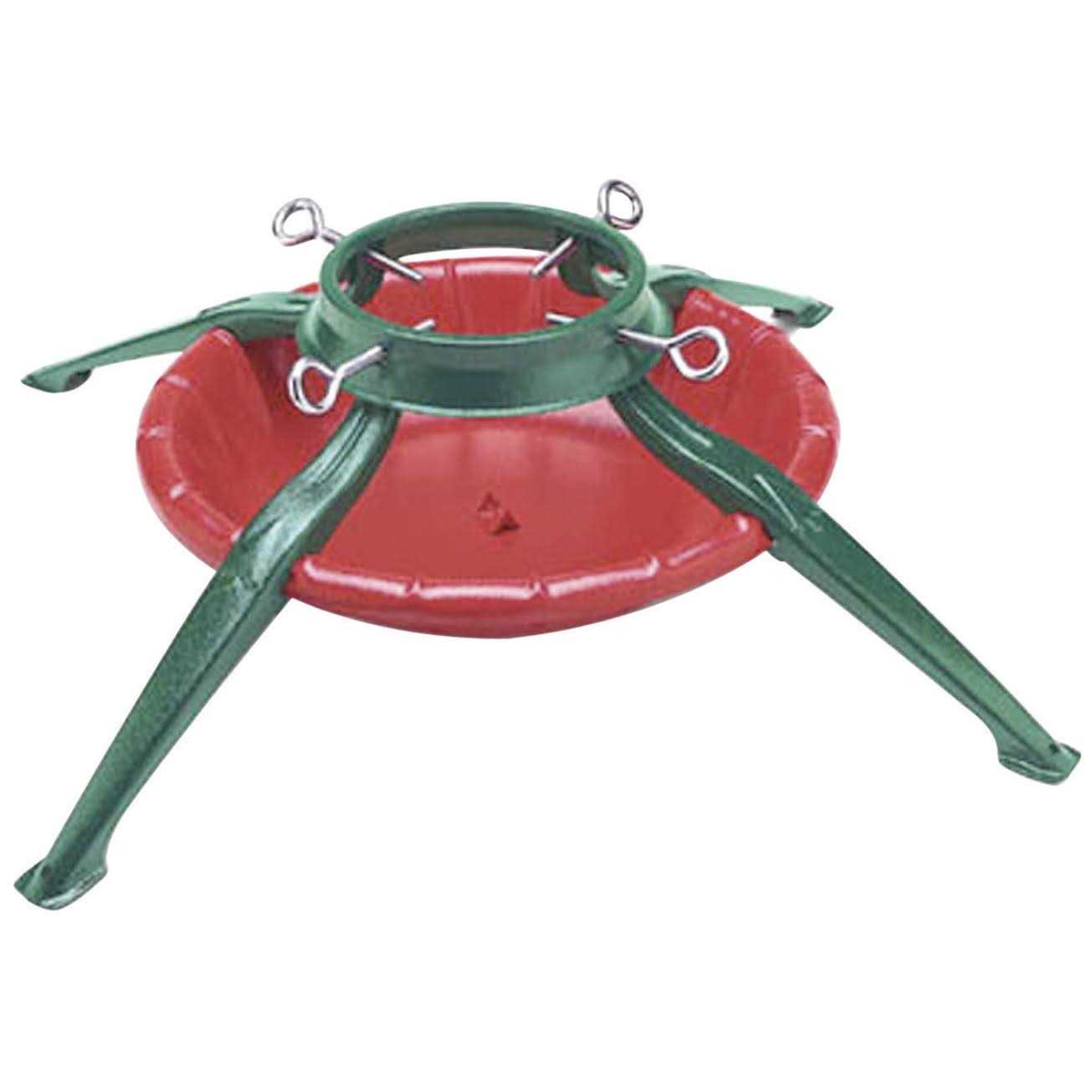 Perfect for securing Christmas trees up to 9 ft. tall, this Steel Tree stand helps you easily decorate your tree for the holidays. A 1.9-gallon water reservoir help keep your evergreen looking fresh while a steel spike plate at the bottom provides enhanced stability ensuring your tree will stand tall all season long.30″ base4 leg top quality steel tree standFor trees up to 9′ tall6″ truck diameter27″ pan1.7 gallon water capacityPowder coated red andamp; greenHelps you easily decorate your tree for the holidays.