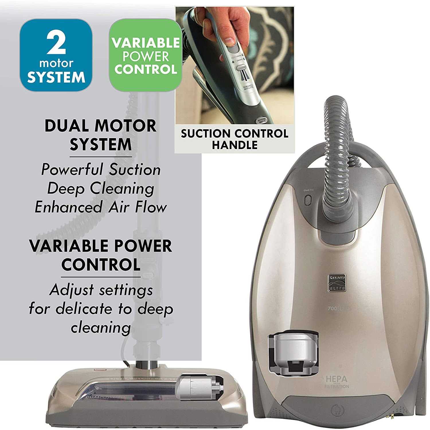 Your Kenmore Elite vacuum is designed to tackle tasks with incredible power. The 2-motor system excels in suction strength with a motor that gives you 20% more air power than a conventional upright vacuum motor. An Ultra Plush nozzle uses airflow to get into the deepest, ultra-plush carpeting, for a deeper, more complete clean. Pick up pet hair and suck up dust without having to bend down to adjust the brush height. LED light sensors not only let you detect dirt being picked up, but will illuminate when the bag has reached capacity. Variable Power mode is perfect for delicate carpet and rugs. 3 accessories included are a crevice nozzle to clean hard-to-reach places, an upholstery brush for furniture, curtains, stairs, van and car seats, and a dusting brush for corners, baseboards and cabinets. All attachments are stored onboard the unit for easy access and storage. Swivel steering easily maneuvers around and under furniture. This lightweight handy small appliance includes a handle for flexible cleaning and easy transport, while smooth-rolling wheels maneuver easily around corners. Make housework less of a hassle, by investing in this well-made, reliable bagged canister vacuum from Kenmore. Please check the connection on the wand and vacuum because if the wand is not pushed in firmly, the connection is not established. Additionally, if the vacuum bag is not routinely changed, it can burn up the motor.