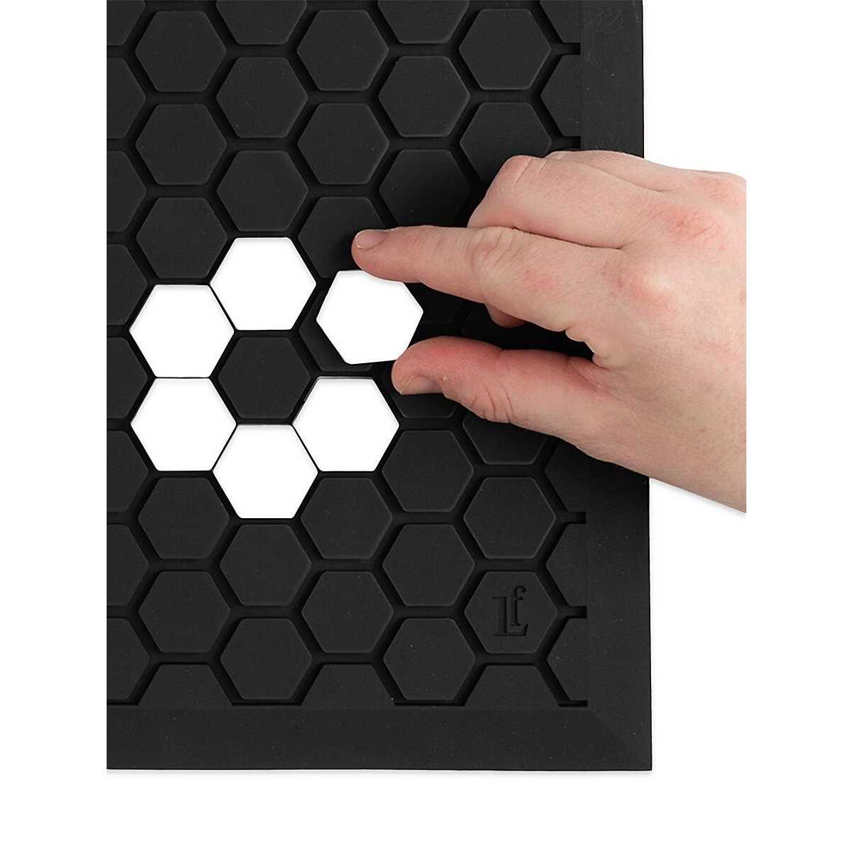 Meet the all-purpose mat that is functional, beautiful, and, most importantly, completely customizable. Its timeless, vintage-inspired hexagon tile design and removable caps can be used to create endless patterns, designs, and words.