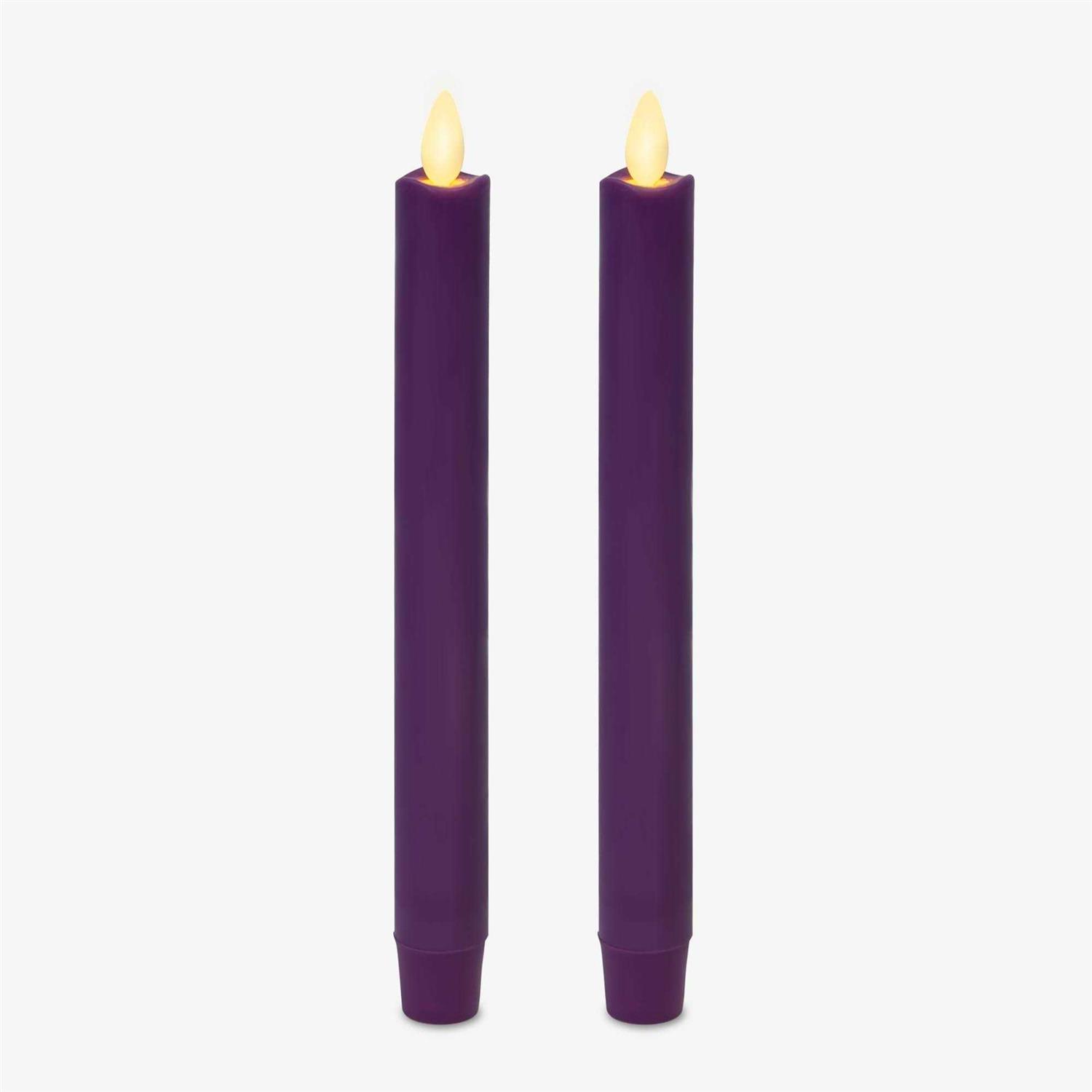 Luminara Set of 2 Moving Flame LED Taper (1×9.75), Flameless Candle, Purple