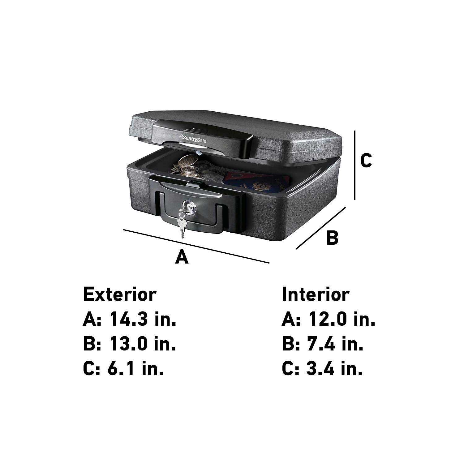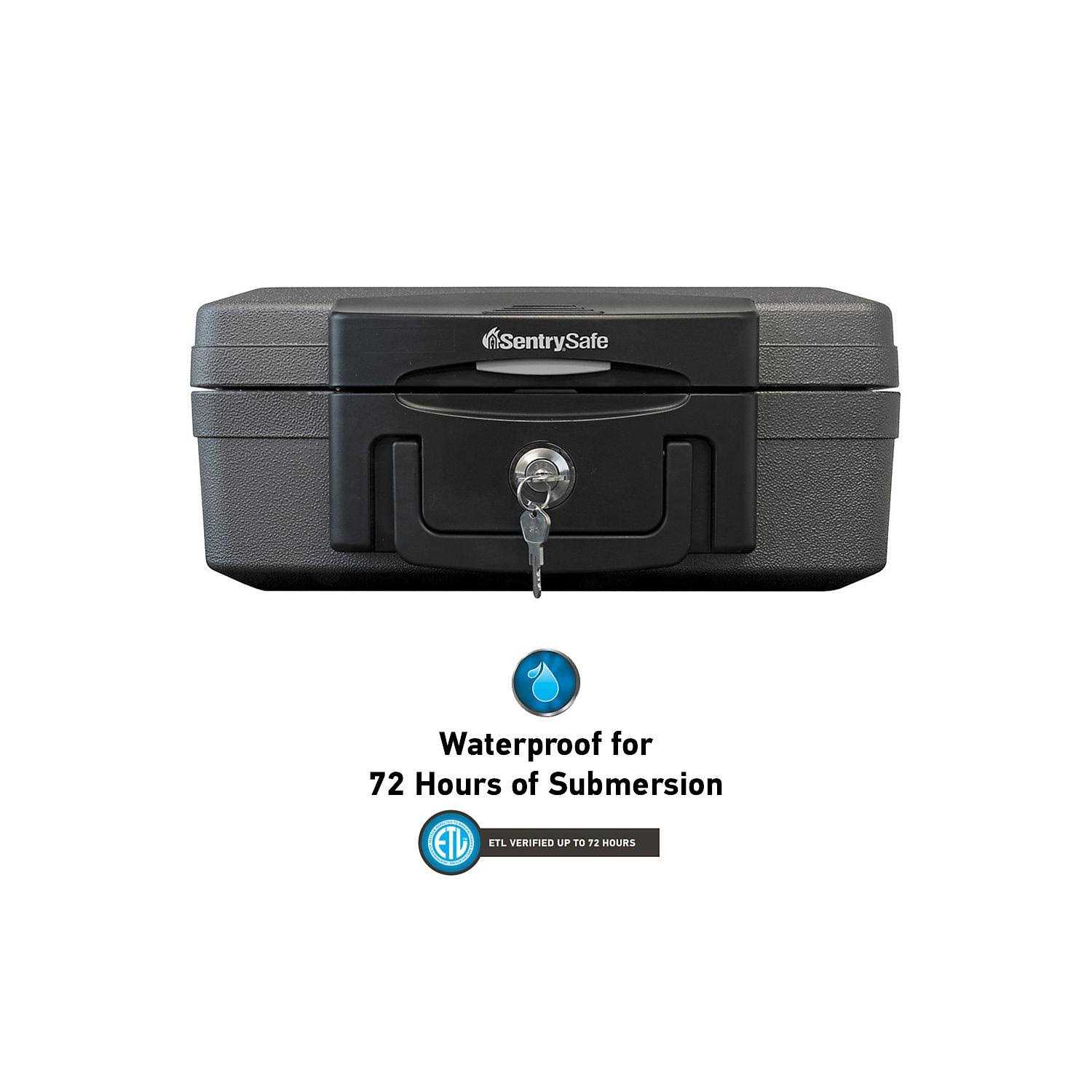 Protect your valuables easily with the SentrySafe H0100 .66 cu ft Waterproof Fire Chest that offers fire and water protection. You can keep your passport and other sensitive documents and heirlooms in the SentrySafe Fire chest. The portable fire safe offers 30 minute of fire protection at up to 1550 degree Fahrenheit. You can also store your important CDs, DVDs, memory stick, USB drives, or other important things in this SentrySafe fire chest and protect them from getting damaged. The carrying handle attached to the safe makes it easy for you to take it with you anywhere. The waterproof safe also has a privacy key lock that ensures that the content stored inside it is safe. The SentrySafe H0100 .66 cu ft Waterproof Fire Chest is ETL verified and UL classified safe.