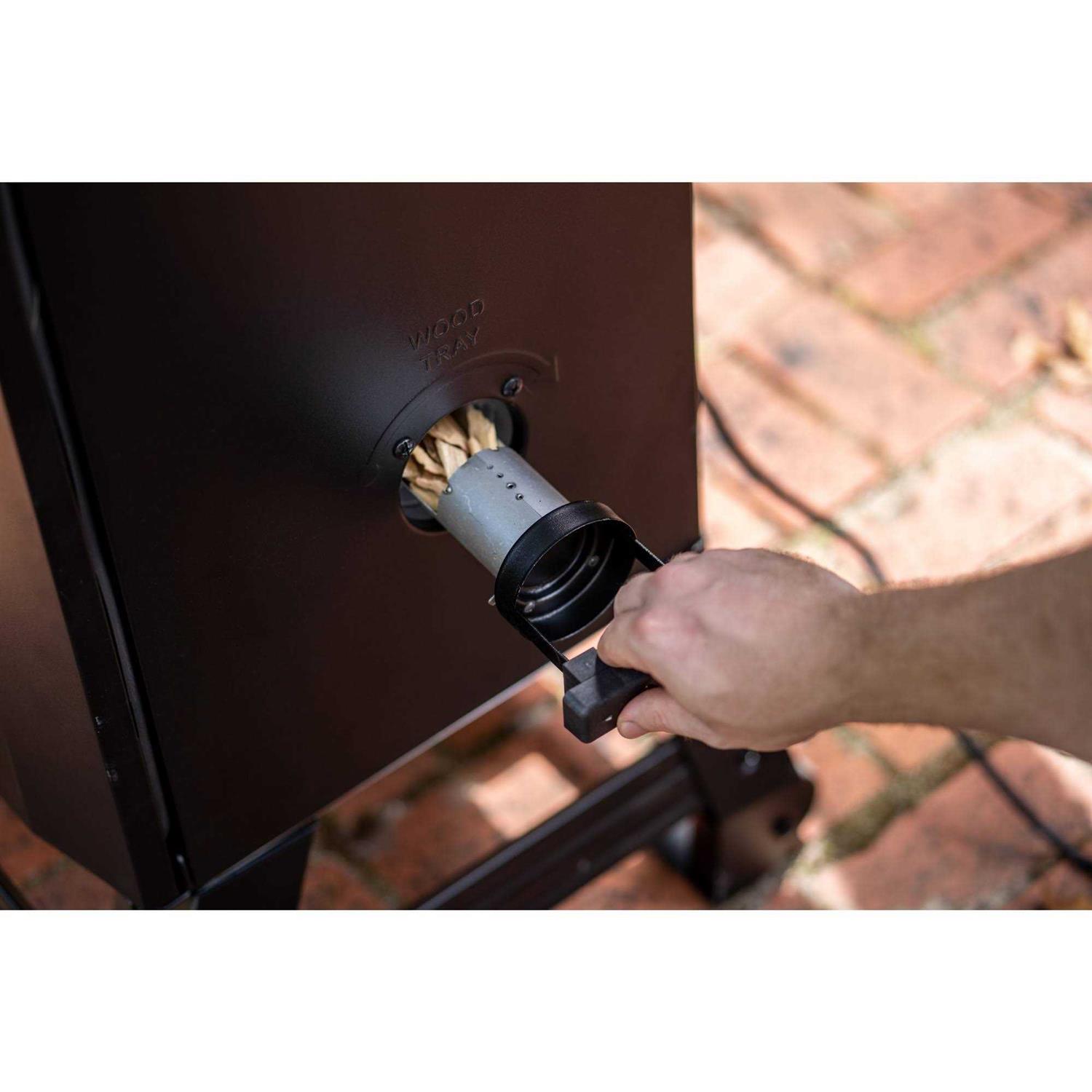 The Masterbuilt Digital Electric Smoker is perfect for the beginner or the pro. Simply plug this smoker in, set the digital controls, and it does the work! The patented side wood chip loader lets you experiment with flavor without opening the smoker door. Water bowl to add moisture and flavor Removable drip pan and rear grease tray catches food drippings Four smoking racks for a total of 978 sq. in. of smoking space Temperature reaches up to 275°F Thermostat-temperature control for even, consistent smoking Air damper for smoke control Fully-insulated body retains heat Digital panel controls on/off, cooking temperature and time null The Masterbuilt Digital Electric Smoker is perfect for the beginner or the pro. Simply plug this smoker in, set the digital controls, and it does the work! The patented side wood chip loader lets you experiment with flavor without opening the smoker door.