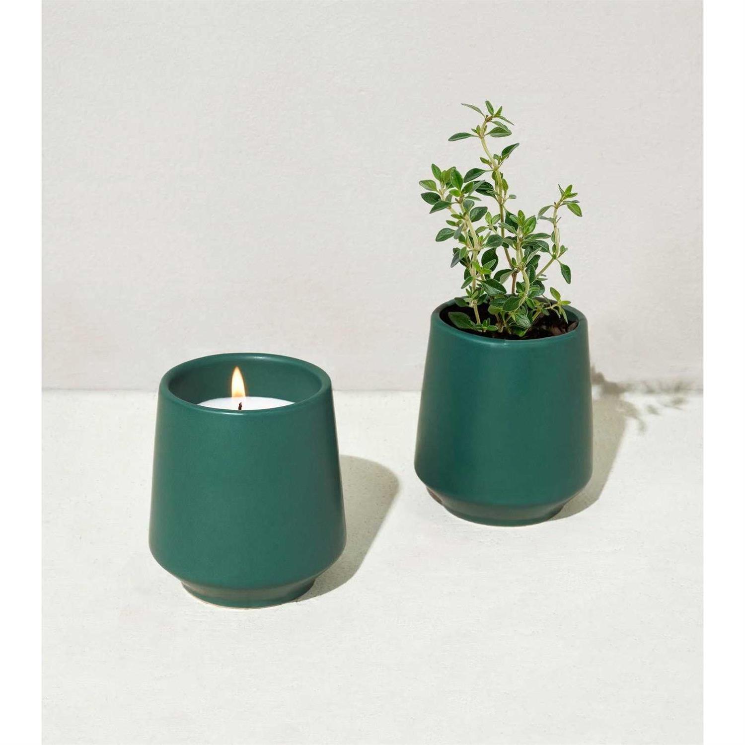 A 6oz soy-blend scented candle is outfitted in a matte glazed ceramic vessel and includes an organic seed packet to grow plant once the candle has been burned down. Candle and seed packet are packaged inside a beautifully designed box for easy gifting. Plastic-free packaging. 42 hour burn time.