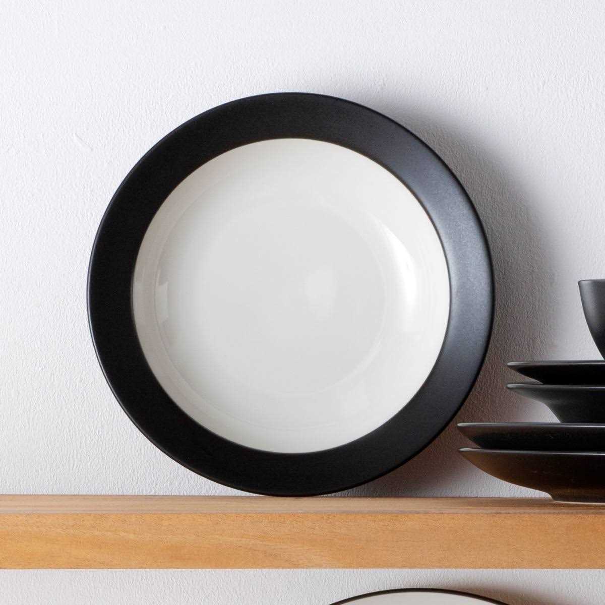 Colorwave Graphite features a matte coloration suggestive of cast iron, caviar, lava rock, and black leather. Most items also have a glossy, cream-colored glaze on the inside. Mix and match the different shapes and add a splash of color to your table! Colorwave offers place setting components as well as an array of serving pieces and accessories.