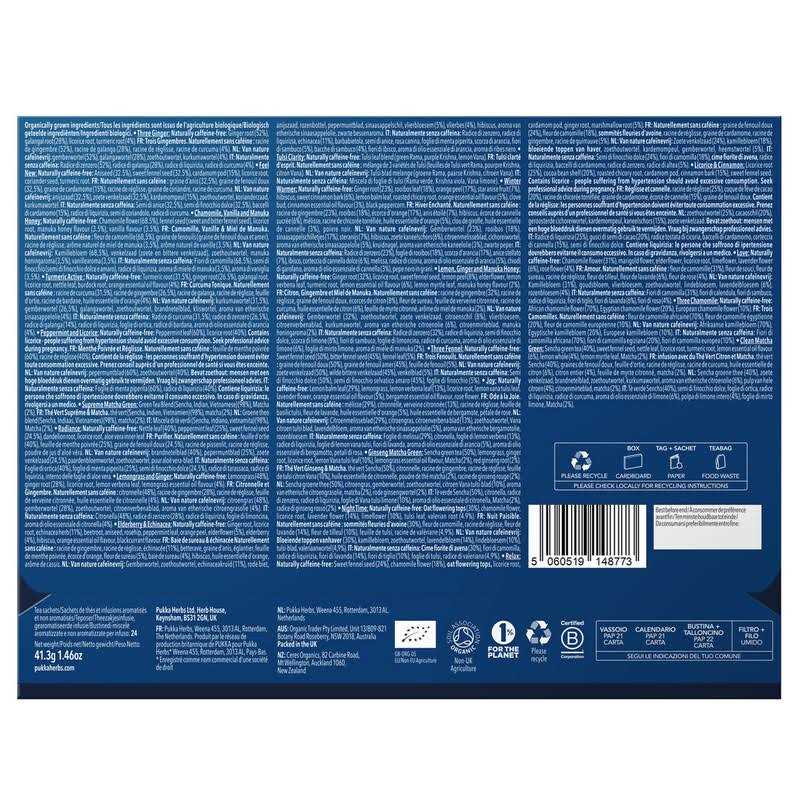 Pukka Tea 2023 Advent Calendar: Perfect as a gift or Tea Sampler Gift for Advent 2023 An alternative to chocolate advent calendars for herbal tea lovers, featuring 24 different delicious organic blends. Discover a delicious flavour every day. From calming herbs to help you relax, to refreshing ingredients to awaken your senses, our advent calendar is the perfect way to discover delicious flavours and revel in the essence of our blends. Expertly blended by herbal experts and nutritionists using the highest quality ingredients.