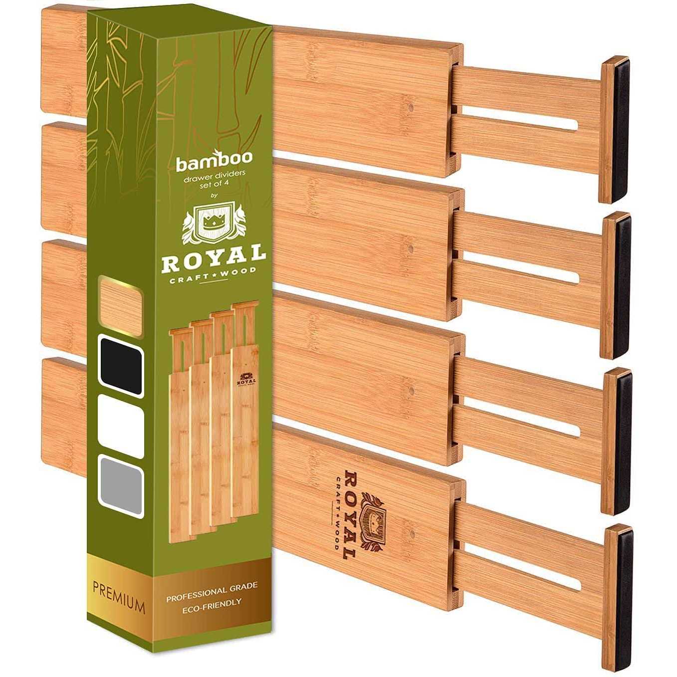 Royal Craft Wood Drawer Divider and Organizer for Kitchen Organization Adjustable Bamboo Drawer Dividers Organizers