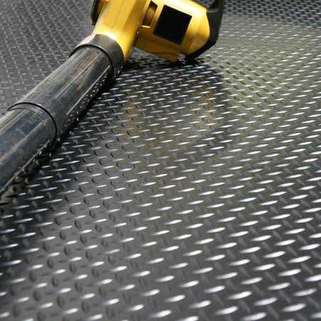 The Diamond-Plate is designed after the classic metal diamond-pattern design. This is a regular pattern of raised diamonds that imbue the industrial aesthetic. Our rubber floor mats are made to floor and protect surfaces just like their metallic forefathers. But with rubber runners, the end-user has the benefits of a forgiving surface that will absorb impact and shock at ultra-affordable costs. Rubber protector mats help safeguard floors and the equipment on top of the floors. Unlike metal, rubber matting will not ding, dent or permanently damage either the floors or the equipment when materials are dropped onto it. Used on stairs and catwalks in industrial settings, the added texture reduces the risk of slipping. For this reason Diamond-Plate rubber floor mats are frequently used on the interior of vehicles or trailers. The ease of installation makes this product an even more popular choice amongst cost-conscious consumers, since the use of adhesives and installers is not needed. This rubber matting is made from 100% synthetic rubber and that allows it to be used in outdoor walkways without worry. Being offered in 8 varied lengths minimizes product loss (due to cutting) and installation costs. Buy one of these rubber floor mats for their superior functionality and enjoy the classic industrial design for years to come.