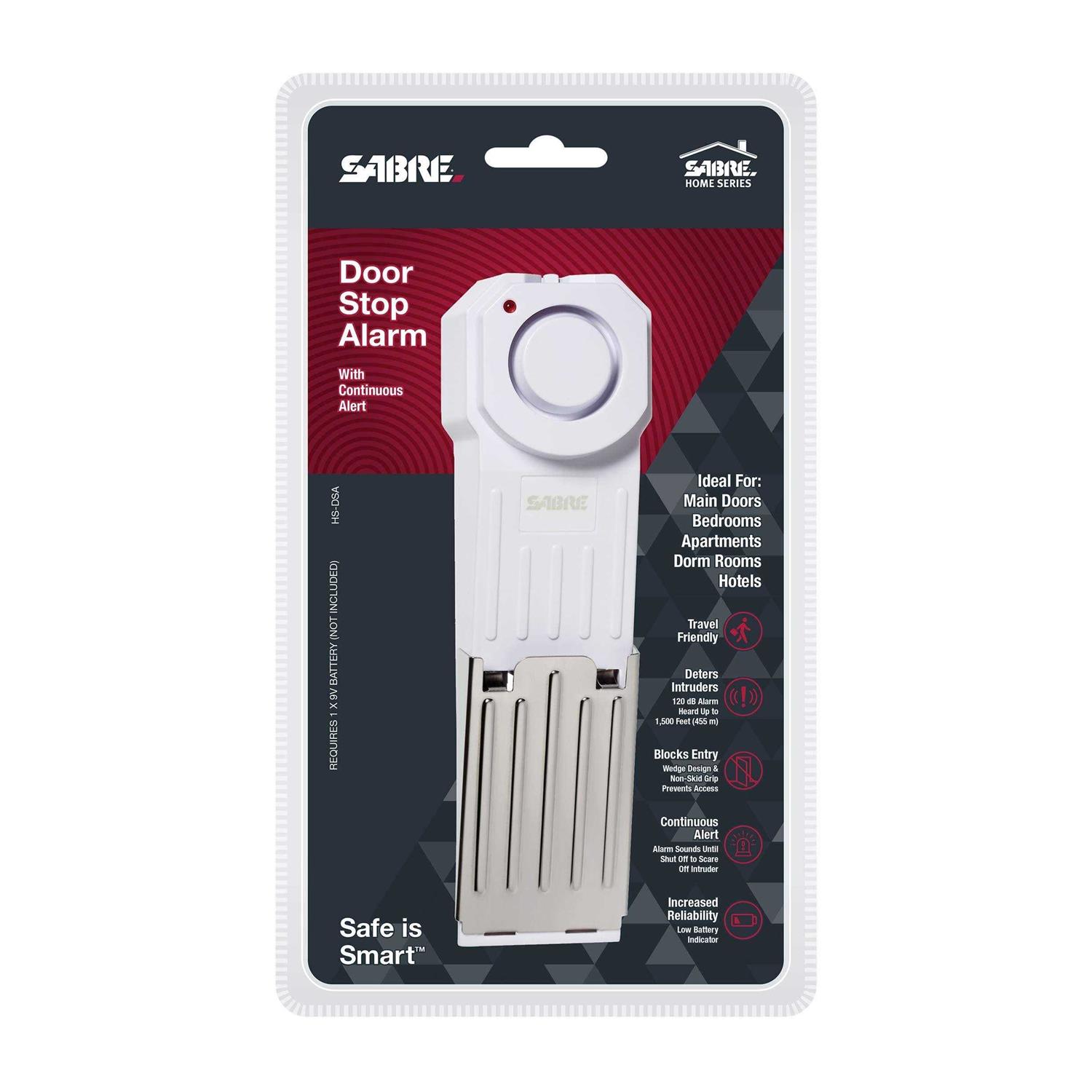 A burglary occurs every 14.5 seconds in the U.S., and budget cuts have led to an average 911 response time of 10 minutes. Furthermore, without the ability to install a home security system, renters and travelers can have a hard time feeling secure in their temporary housing. SABRE’s Door Stop Alarm is a great solution to either help fortify an existing home alarm system or use on its own in a bedroom, dorm, hotel room or apartment. The extremely 120dB loud alarm is audible up to 1,500 feet (455-meters) away and sounds when door pressure is applied. The alarm is coupled with a non-skid pad to prevent the door from opening. This attractive, premium white alarm installs easily in just seconds – simply slide it under the crack of an inward-swinging door. There’s no wiring needed, so the alarm works during power outages. A small Philips Head #1 size screwdriver is required to remove battery compartment cover. For an extra level of security, the Door Stop Alarm provides a battery status update via a low battery indicator. The Door Stop Alarm was developed by SABRE, the #1 pepper spray brand trusted by police and consumers worldwide, meaning this product is extremely reliable.
