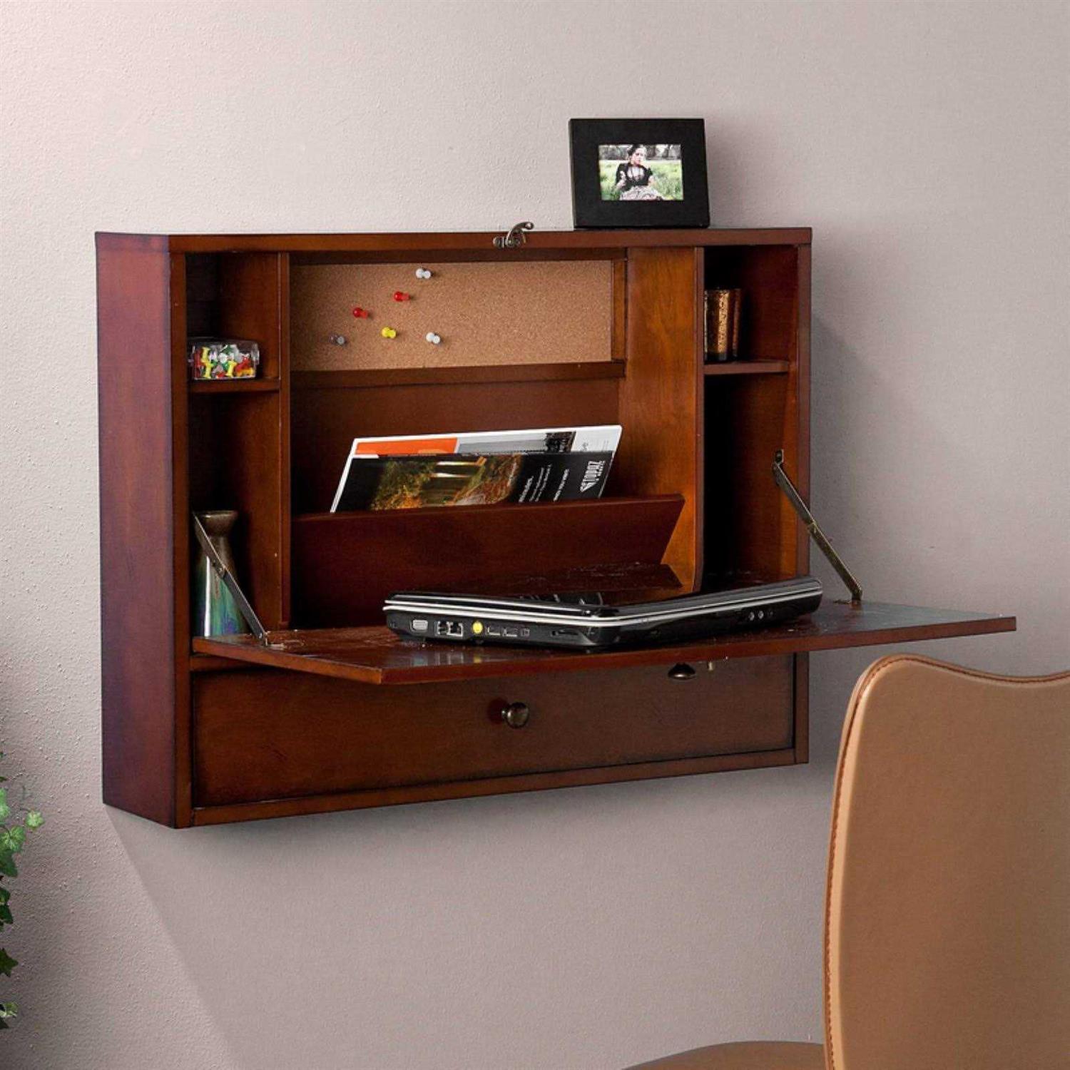 Southern Enterprises Wall Mount Folding Laptop Desk, Brown Mahogany